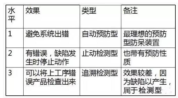 根据防呆装置的防呆效果,可将其分为3个水平: