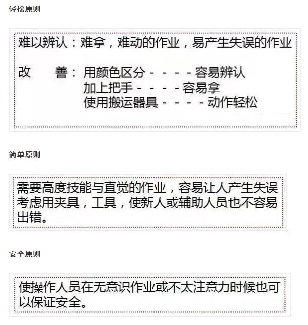 以下是几个基本的防呆法则,遵循这些法则,可有效防止作业失误。