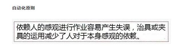防呆法会降低了对于人的主观判断的依赖,尽量实现制程的自动化,减少了人出错的可能性,提高了劳动效率。