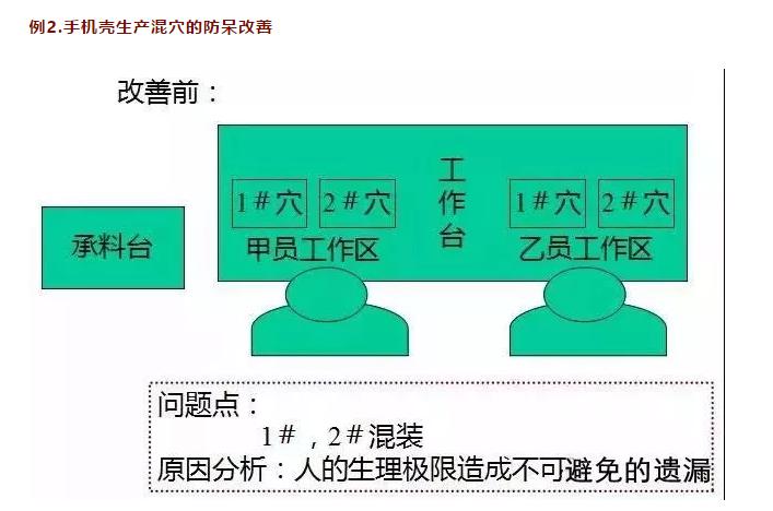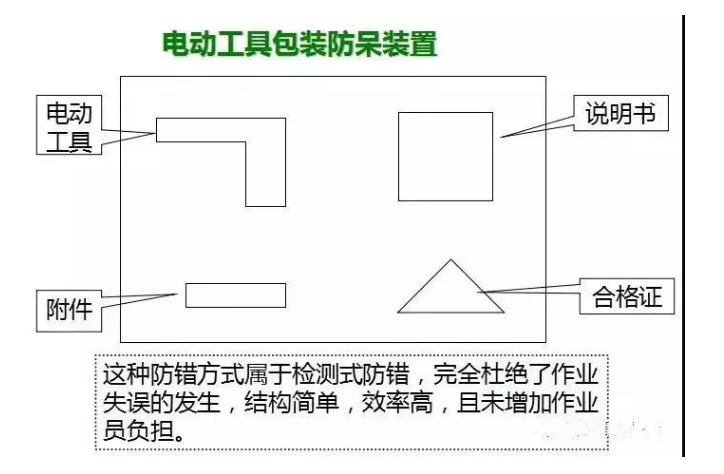 (2)防呆法意味着“有人为疏忽或者外行人来做也不会出错即不需要专门的经验或特别注意的制程“傻瓜化”。防呆法采用一系列方法和或工具防止人为失误的发生,除非故意,无论如何都不会把事情做错。