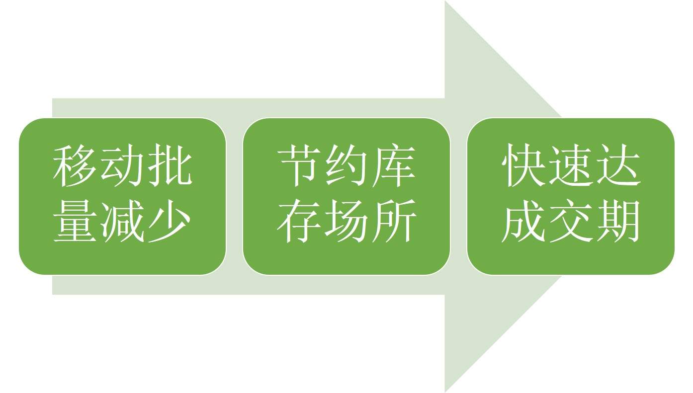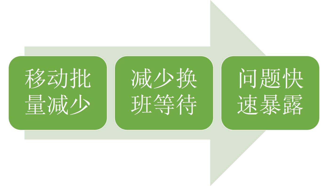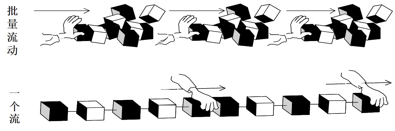 “一个流”生产的第一要点就是要使产品生产的各道工序做到几乎同步进行,使产品实现单件生产、单件流动。单件流动是为了避免以批量单位进行加工,前道工序的加工一结束就立刻转到下一道工序,从而使得工序间在制品的数量接近于零。