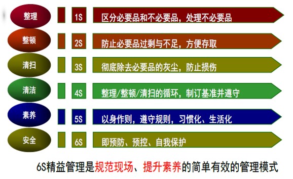6S管理是哪6个S呢?今天跟大家解说一下,6S即整理(SEIRI)、整顿(SEITON)、清扫(SEISO)、清洁(SEIKETSU)、素养(SHITSUKE)、安全(SECURITY)