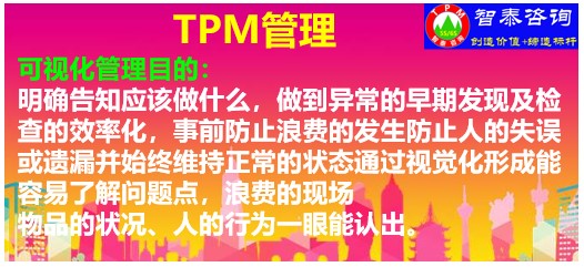 深圳智泰下属TPM咨询公司推进的TPM管理不仅仅是设备管理,而是企业的全面改善,智泰专业团队以现场三现为主展开企业的持续改进,帮助企业提升管理水平,促进企业可持续发展,最终达成行