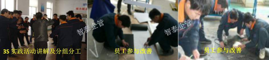 本次活动首先由智泰顾问老师给参加3S活动的人员进行6S培训,培训结束后进行分组分区域,然后来到区域内进行3S活动,员工们正在认真的判定现场的不必要物品并开始清理,组员有的查找6S不合理,有的改善6S不合理,现场活动结束后再整理分析不合理,拟定维持管理标准