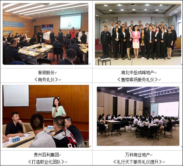 曾为中国人寿、中国平安、中铁一局、国家电网等企业定制实战礼仪课程,课程满意度95分以上;