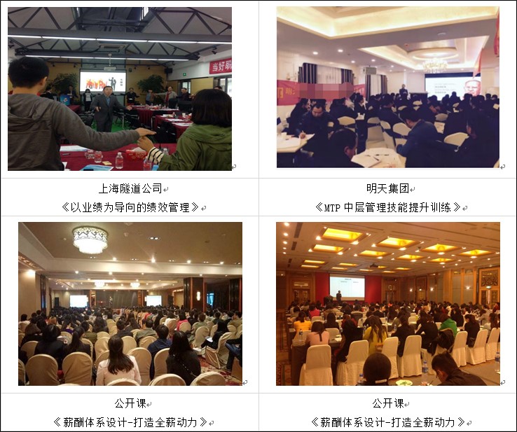 为上海市华侨城欢乐谷、正泰电缆、百劲机械、新华控制技术等企业提供《跨部门沟通与团队协作》授课,共20多期。