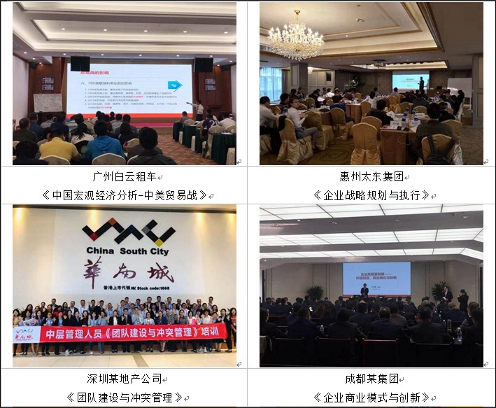 ● 曾受邀中铁隧道局集团有限公司进行课程分享,主讲《中国宏观经济分析》、《危机公关》、《领导者的情商领导力修炼》,《团队建设执行力》,返聘5期