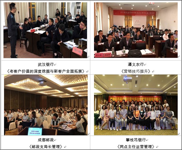 其他银行:民生银行广州分行、兴业银行济南分行、龙江银行总行、厦门银行总行、海南银行总行、徽商银行阜阳分行、广发银行、深发银行、华夏银行南昌分行、北京农商银行,中国银行业协会、成都天府银行、甘肃银行业协会、北京大学经济学院总裁班等