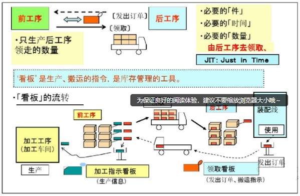 大野耐一先生在日本的丰田汽车制造厂引入内部市场机制,由后工序向前工序发出生产订单。这种内部市场机制用来进行流程间的生产控希望借此达到“一切遵照顾客的要求,只在需要