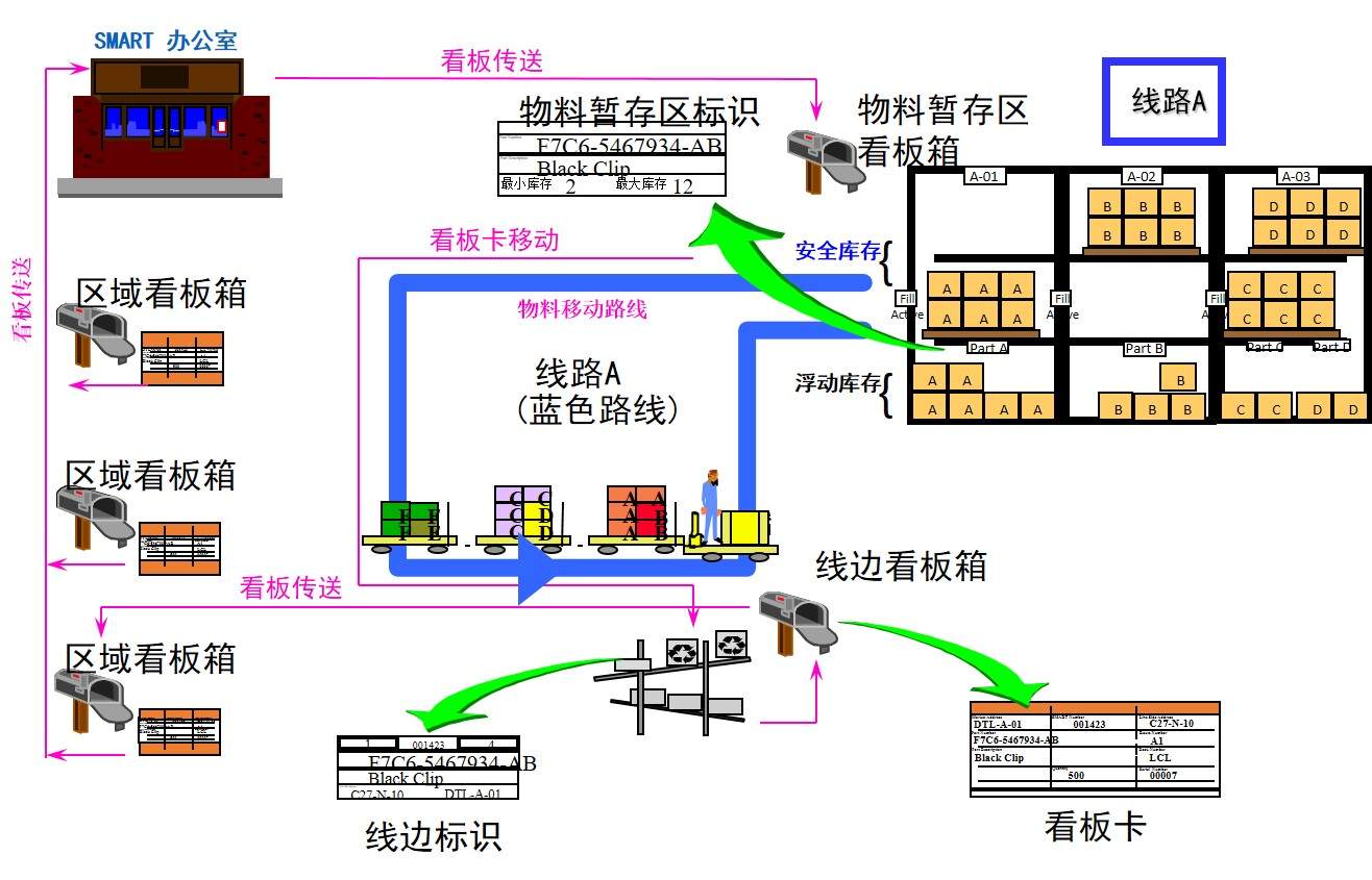3.拉动看板系统具有良好的目视性,使得管理者或计划员能够一眼就获得需要了解的生产进度情况。