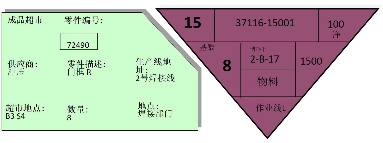 4.按看板补充下工序零件,同时取出在制品超市中零件看板(看板交换)
