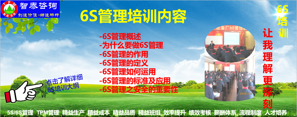 智泰咨询机构提供专业的5S管理,6S管理,TPM管理,精益生产管理的咨询与培训服务;我们有一批从事企业管理咨询20年以上的资深顾问,他们行业经验丰富,成功案例多,是真正落地的咨询机构!...