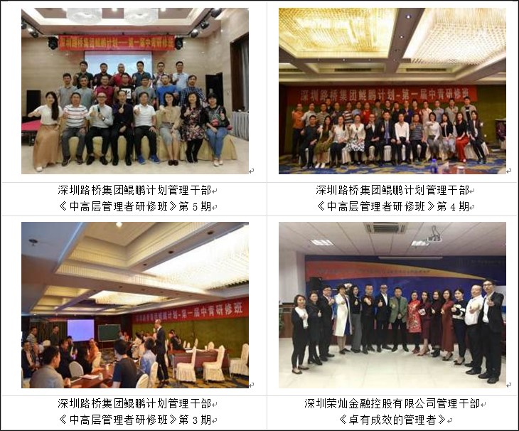 ■2018年成功为深圳路桥集团中高层管理做《路桥集团鲲鹏计划中青研修班》6期,打造路桥集团坚实的中高层管理人员。