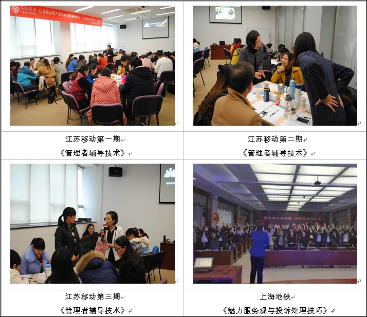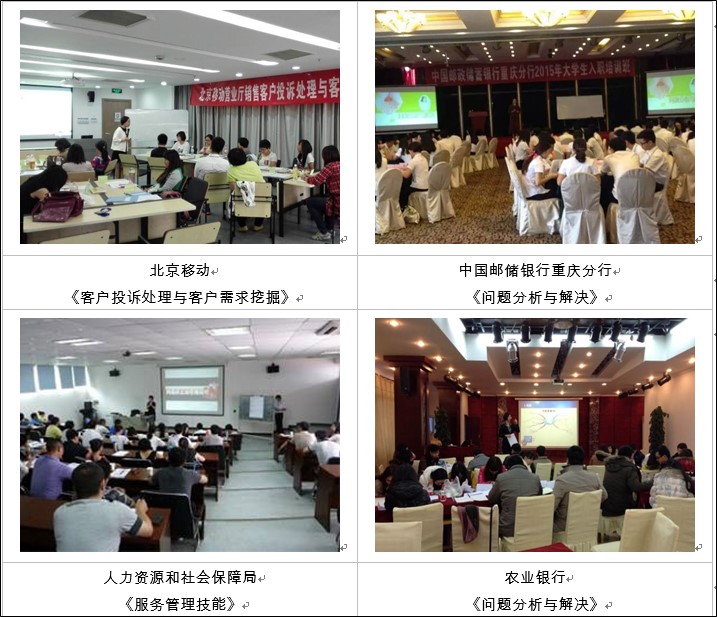 曾受邀兄弟单位及省级医院、电力系统做《打造营业厅服务蓝图》及《客户投诉处理培训》、《问题分析与解决》,得到业界的高度认可,好评如潮