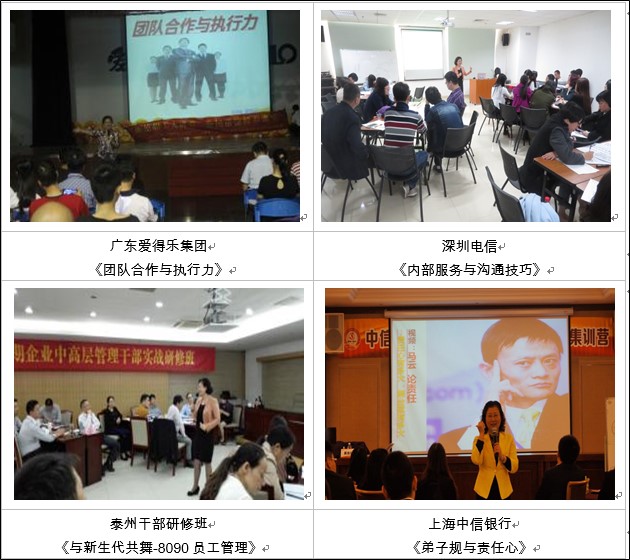 各类企业:大庆集团、河南邮政、新兴铸管、江西新余钢铁、中国核二建集团、中航工业沈飞集团、浙江国技互联信息技术有限公司[温州百度]、一汽大众成都分公司、益阳移动、中石化华北油气分公司、中国电信、广州电信、珠海邮政、深圳地铁集团、深圳百康健康、大琢投资、琢子文化、广东南航、佛山爱得乐集团、顺德区大良科技、广东精艺金属股份有限公司、光大房地产、中科科技发展、广东金刚工程、冠捷电子、深圳鹏都兴实业、佛山伟仕达电器有限公司、佳隆股份、理丹电器、建华管桩、深圳TCL、广东嘉晟生物科技、天安数码城集团、广东高速通驿集团、华企商学院等。
