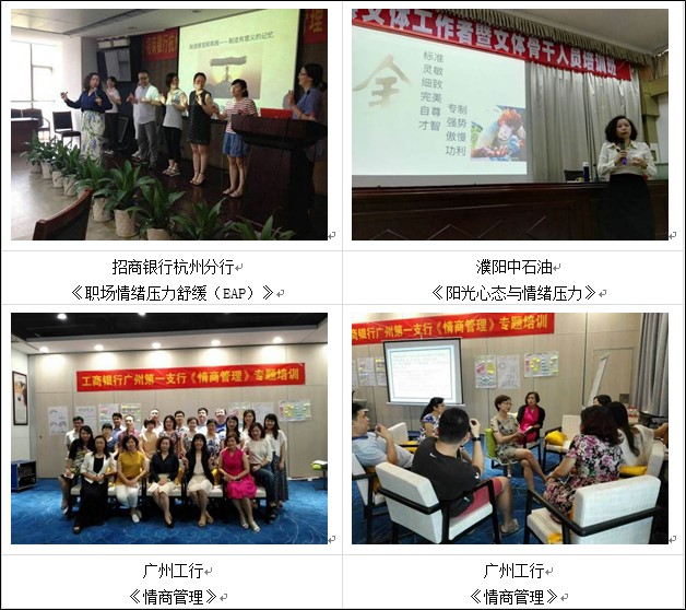 教育单位:外语外贸大学、深圳外国语初中部、南京师范大学、江苏启东中学、深圳清华实验学校、深圳东方英文书院、深圳实验学校、桃源中小学、城市绿洲学校、广州心理管理、女性研修班等